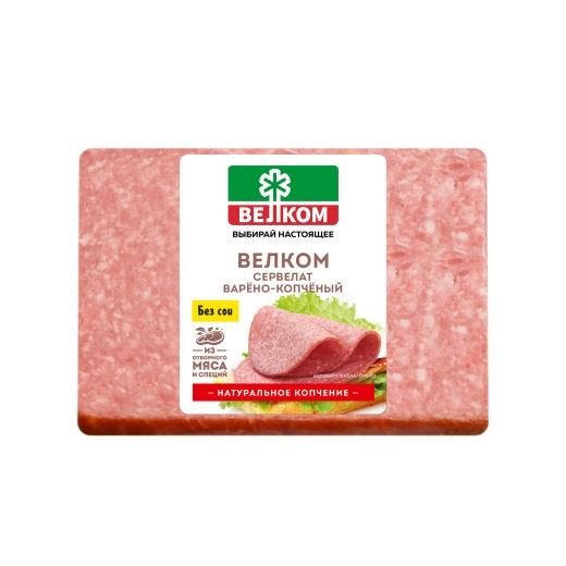 Сервелат, приготовленный по авторской рецептуре технологов Велком, сочетает классический вкус варено-копченой колбасы и неизменное качество. Подойдет как для перекусов, в дополнение к салатам, холодным, горячим закускам, а также сложным блюдам.